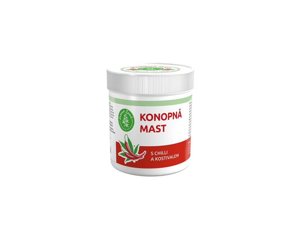 Konopná mast s konopím a přídavkem kostivalu a chilli je vyrobena podle tradiční receptury. Základ masti tvoří přírodní lanolin, bambucké máslo a včelí vosk. Bez vazelíny.